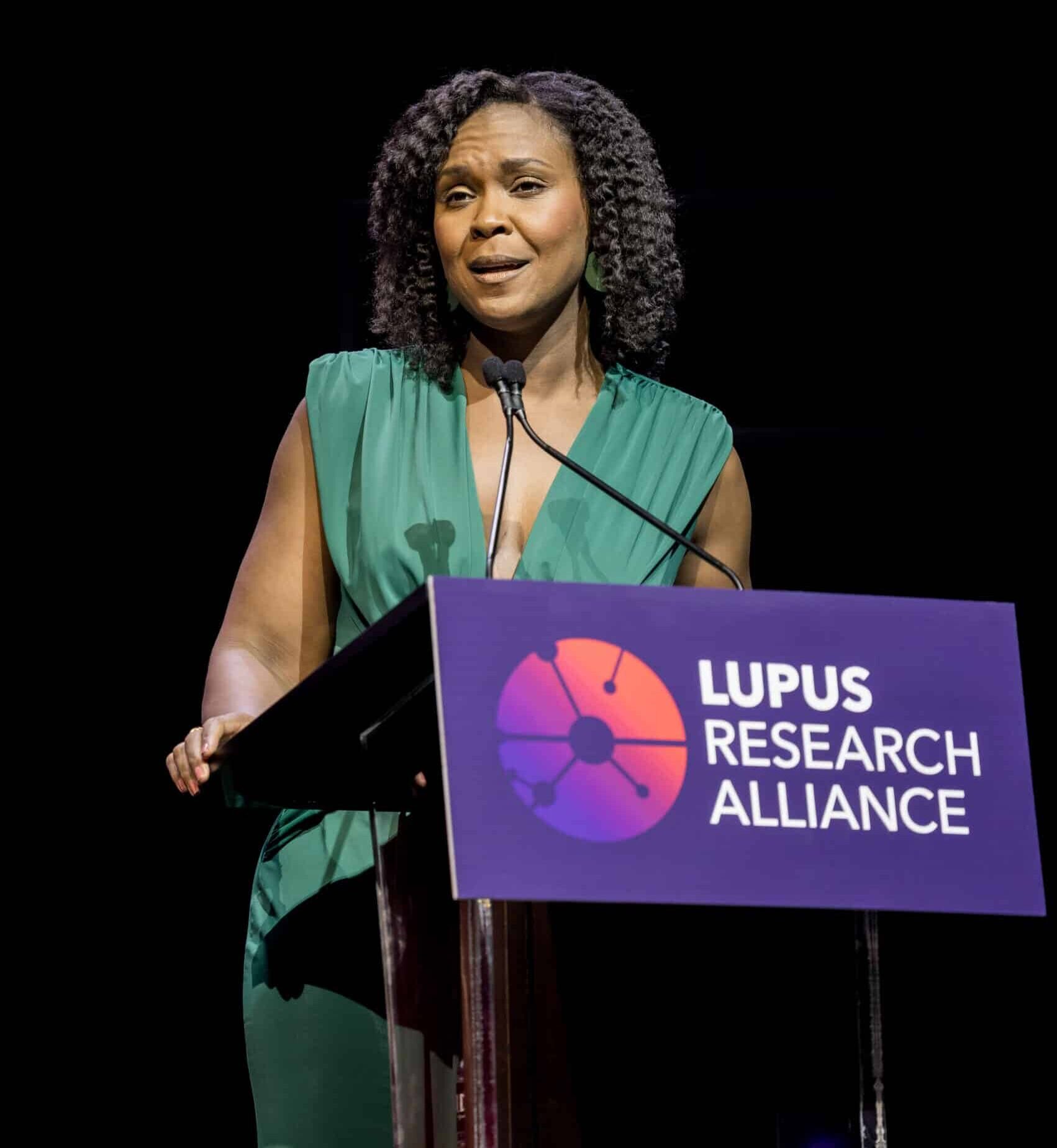 “Since first collaborating with the Lupus Research Alliance over a decade ago, I have witnessed the strength that comes from advocacy, the support that comes from community, and the hope that comes from scientific progress.,” said Ms. Gabriel, who is a lupus advocate and Lupus Voices Council member. “The work and passionate dedication of so many in this room and beyond helps me and millions like me around the world believe in a future free from lupus.”