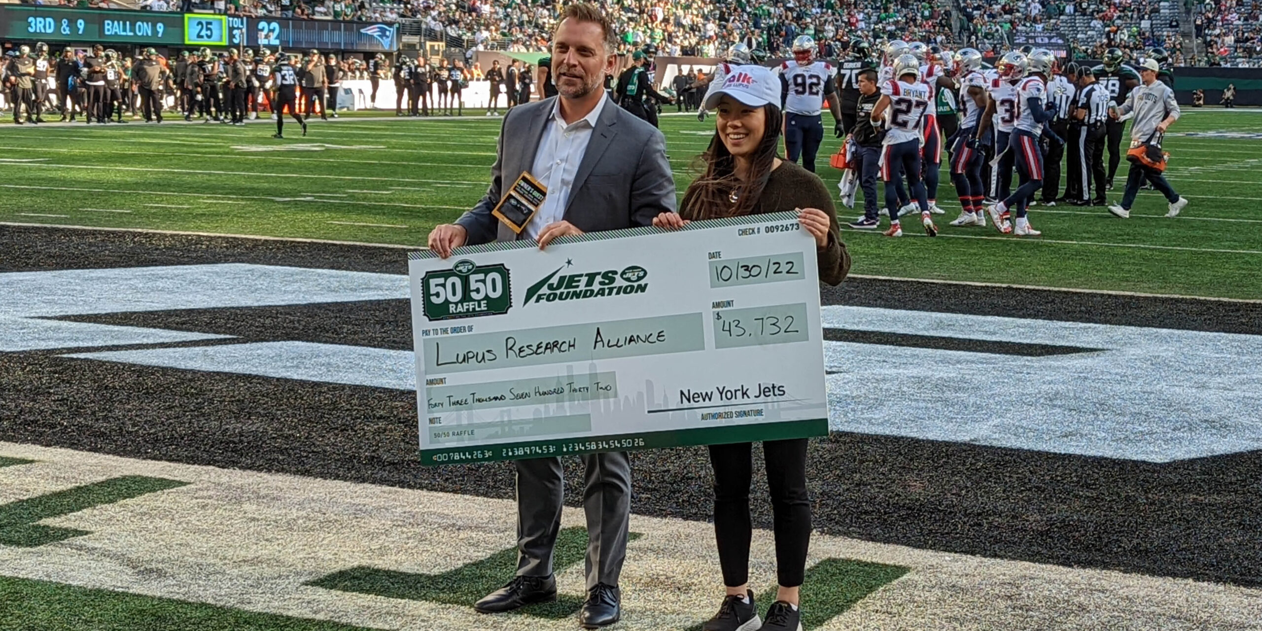 Last Sunday brought major fundraising support to the Lupus Research Alliance (LRA) during Lupus Awareness Day at the New York Jets game against rival New England Patriots.